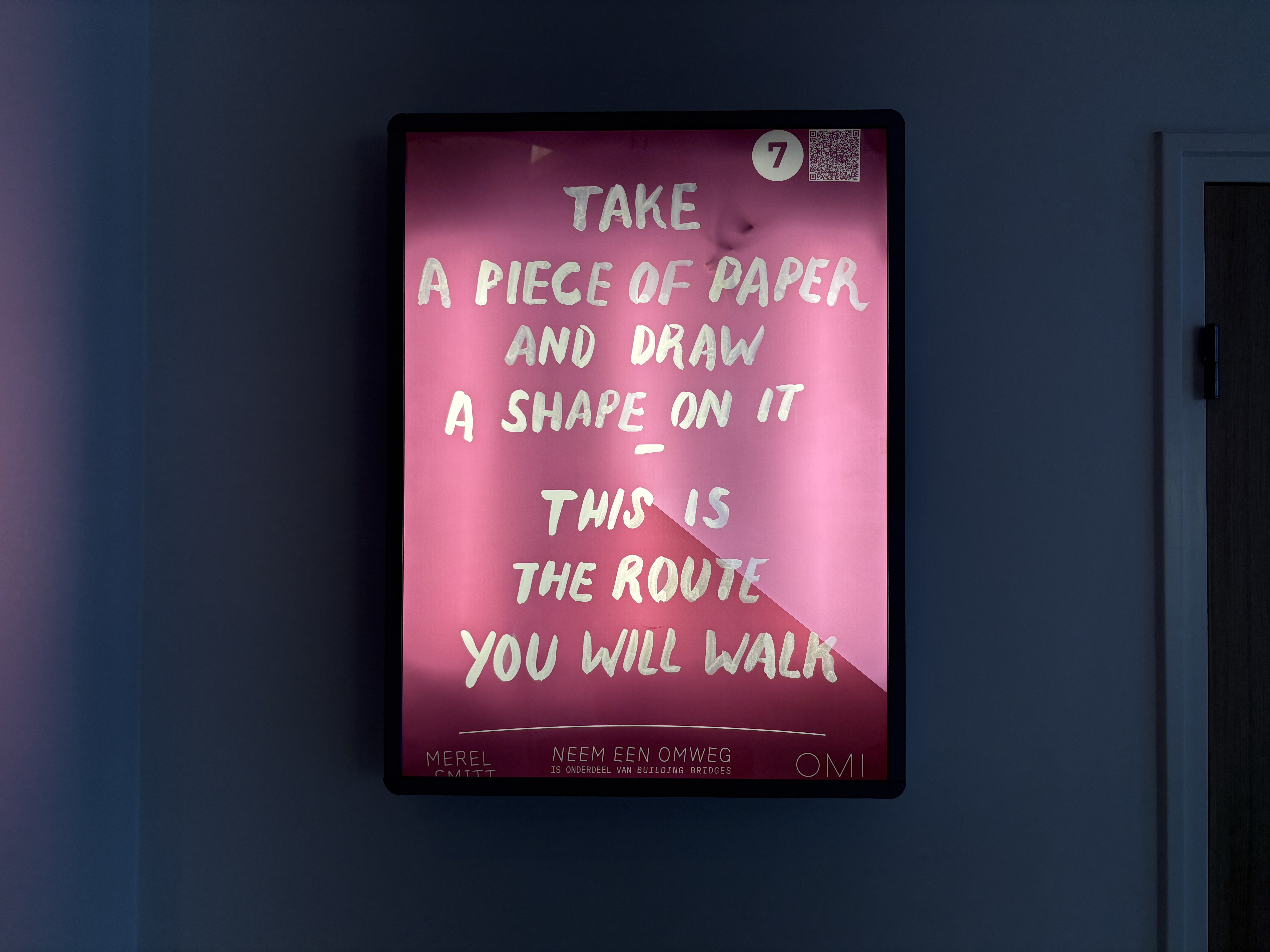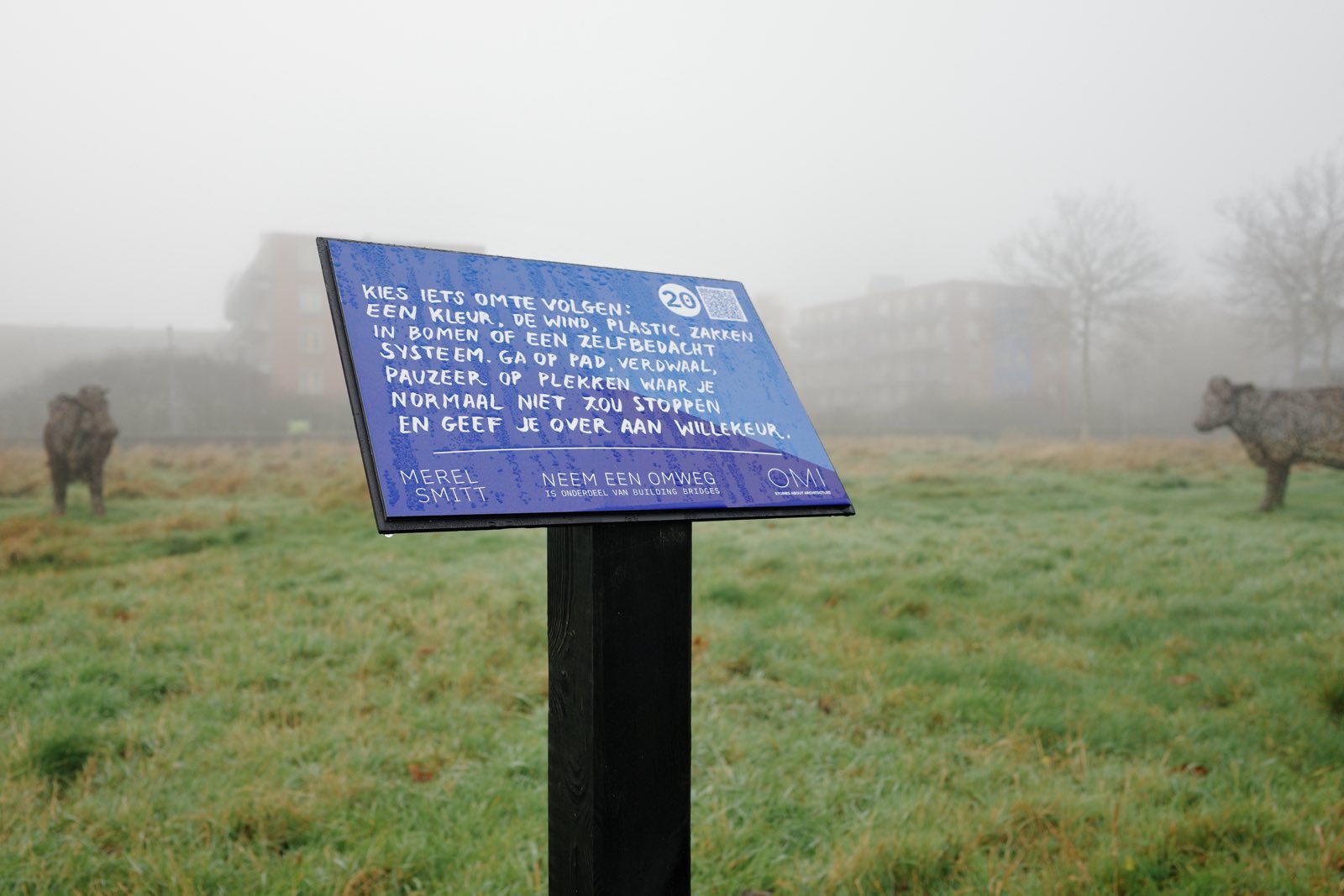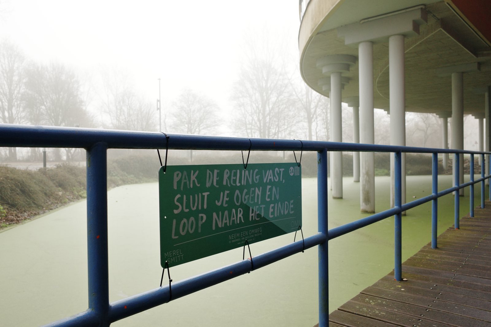 On construction boards, in the middle of a pond, on faΓ§ades and on the street, she has placed quirky invitations and instructions together with Studio Detour. Take your own detour along these provocative interventions that invite you to experience the surroundings in a completely new way.